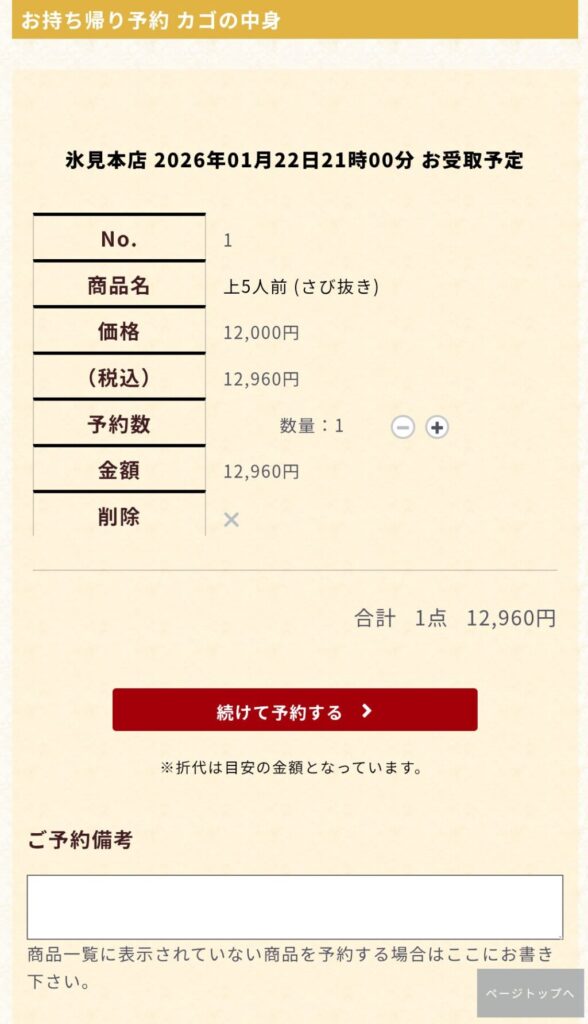 氷見きときと寿司のテイクアウト注文時の注意点