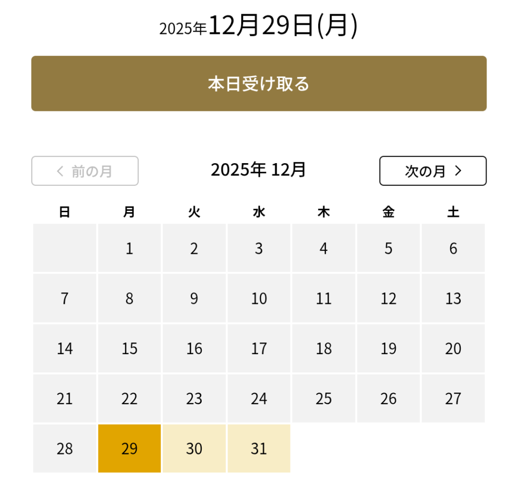 - 受け取り日を選択する