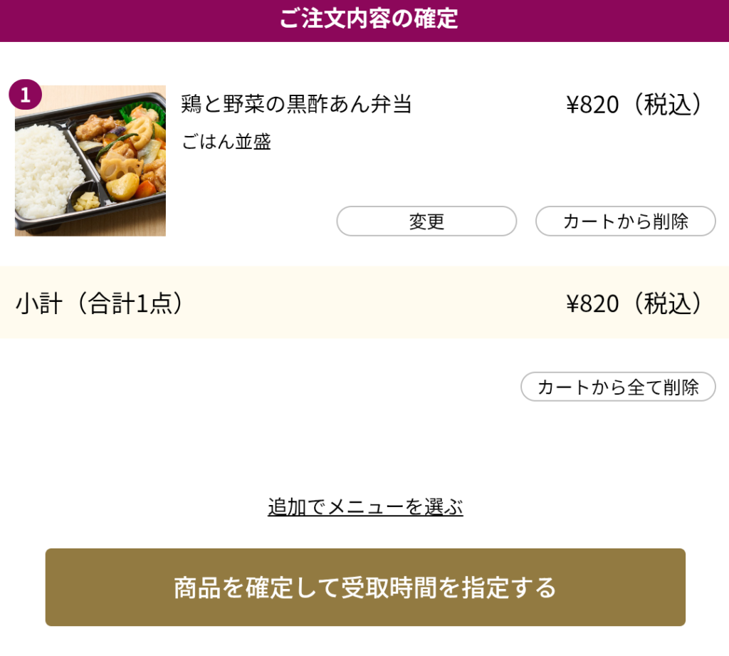 受け取り日時やメニューなど間違いないか確認しましょう。