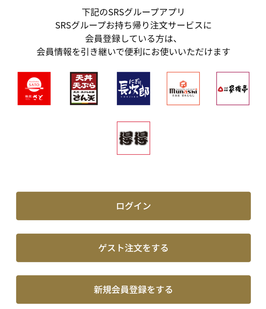 SRSグループアプリ(家族亭アプリなど)に会員登録している場合は、会員情報を引き継いで利用できます。