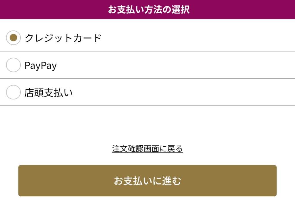 - 支払い方法選択