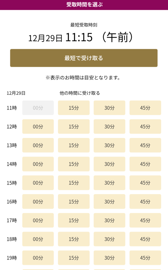- 受け取り時間を選択