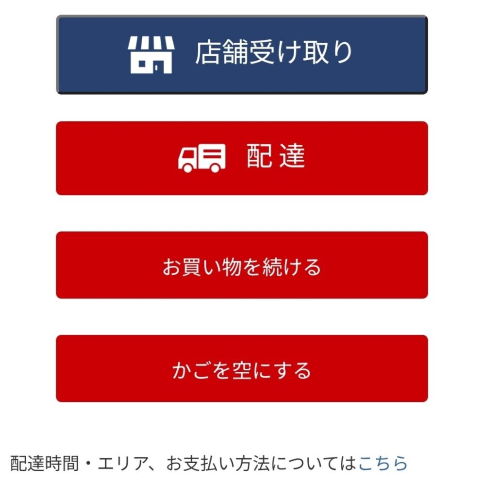 店舗で受け取りたい方は店舗受取を選びましょう。