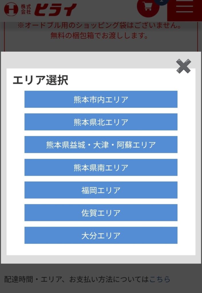 5. 注文エリアを選択し店舗を選択