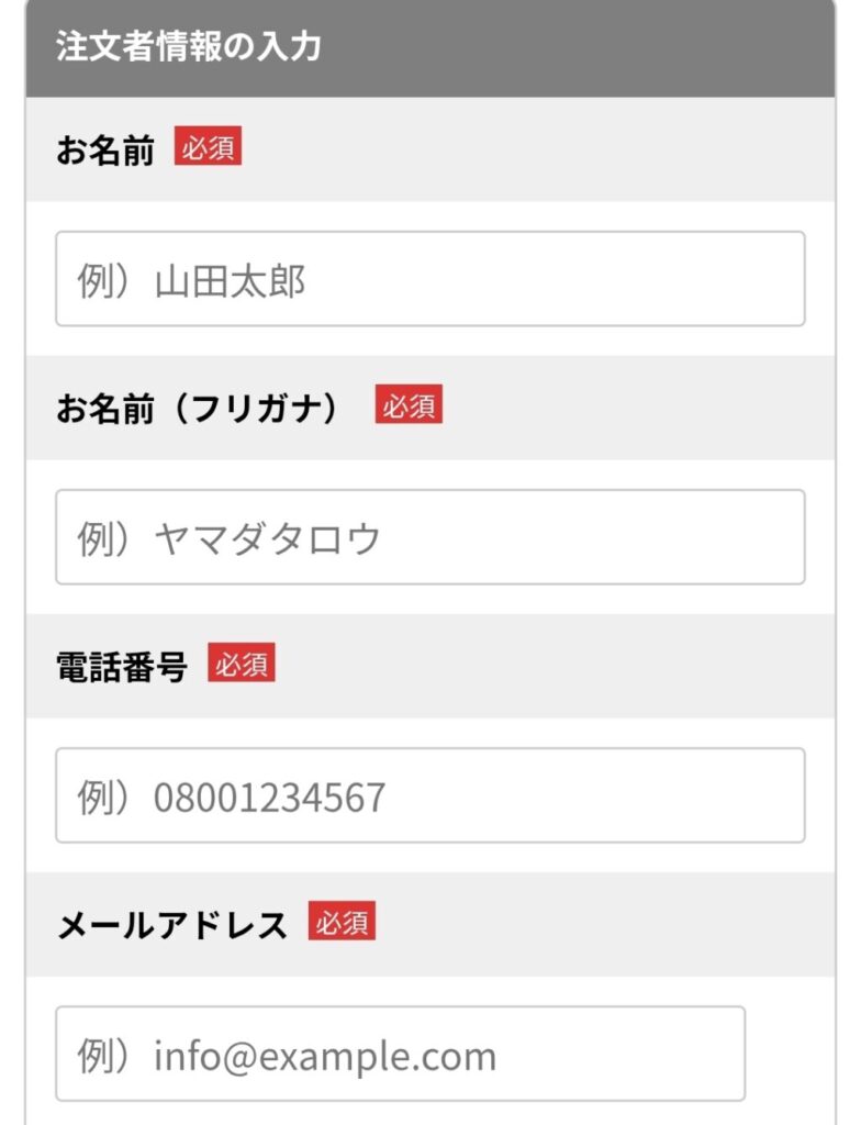 6. 注文内容確認しお客様情報入力