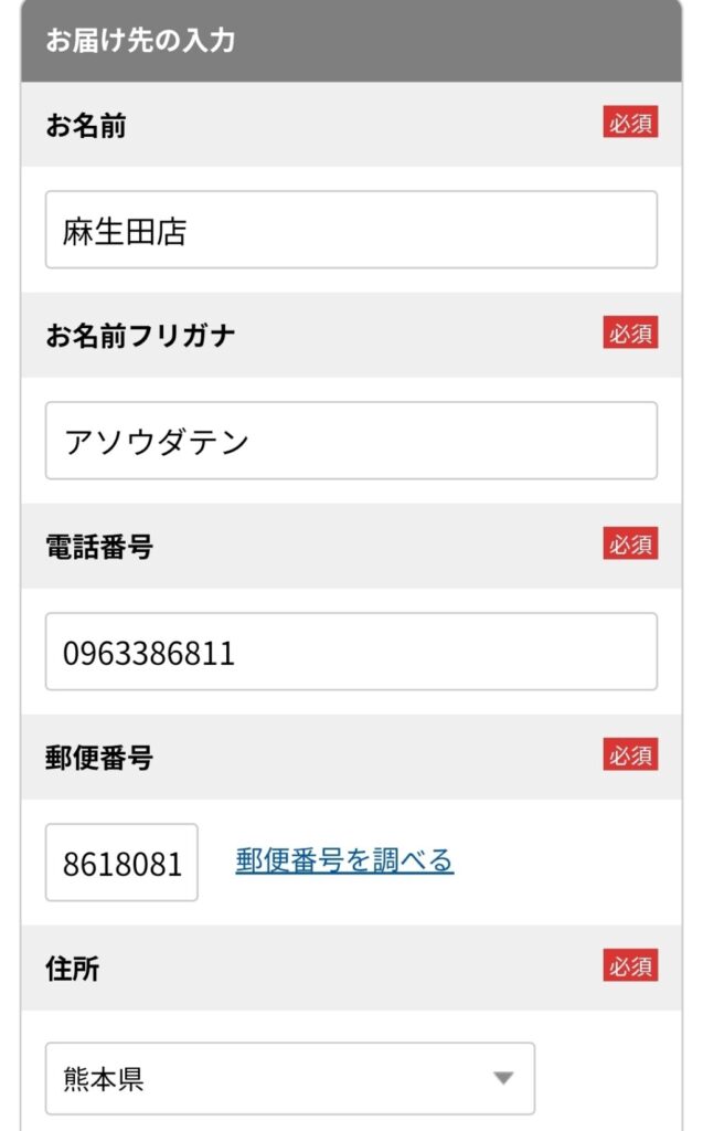 注文する店舗の住所などの確認をします。