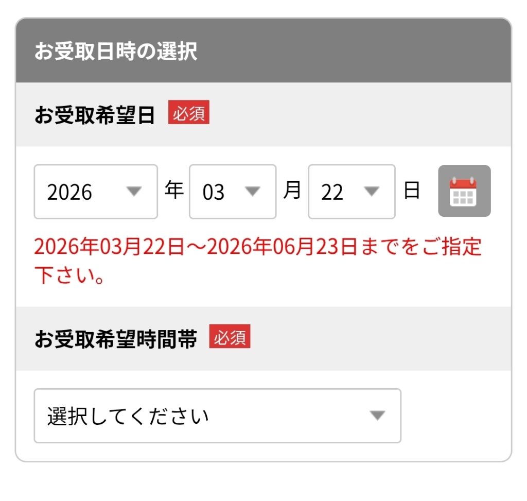 受け取り日時選択