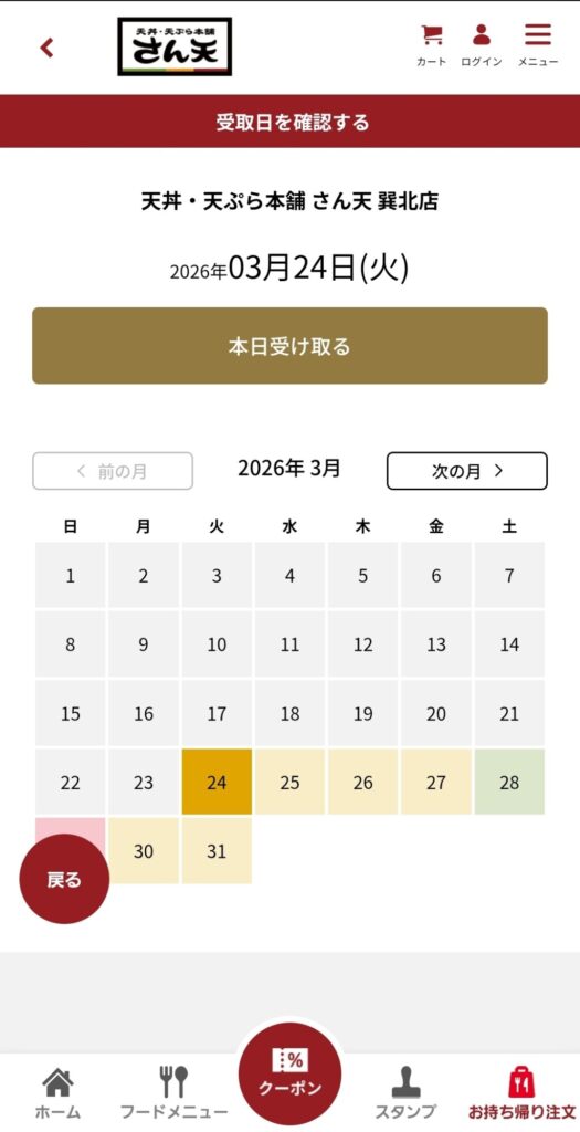 受け取りに行く日にちを選びましょう。