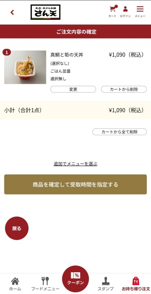 確認したら「商品を確定して受取時間を指定する」を選びましょう。