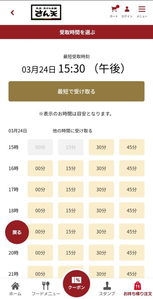 さん天の公式アプリから、事前予約することもできます。