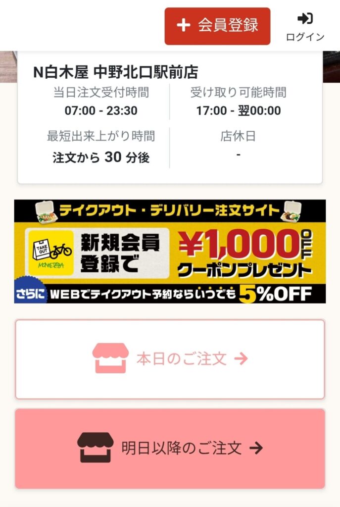 店舗を選んだら「本日注文」or「明日以降のご注文」どちらかを選んでください。