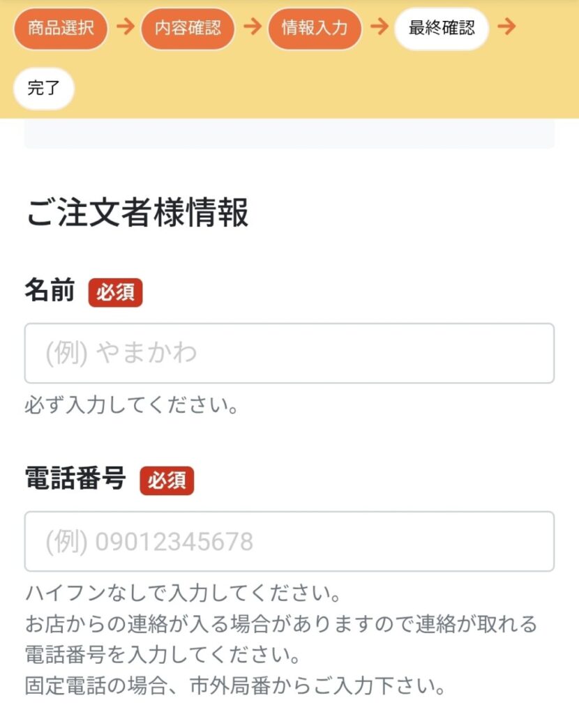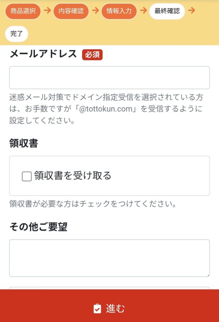 名前・メールアドレス・電話番号・領収書有無を選択します。