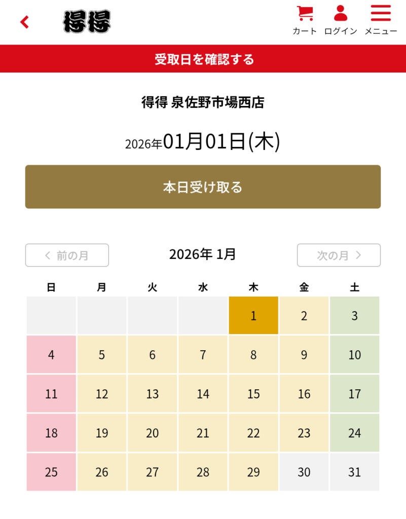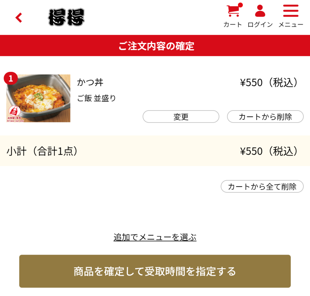 「得得お持ち帰り注文」はテイクアウト専用サービスですので、宅配利用の商品は注文できません。