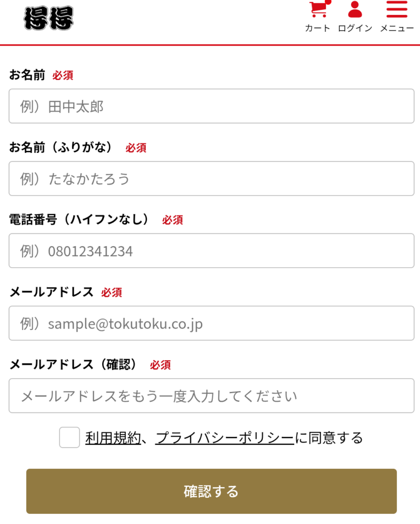 スマートフォンやパソコンから「得得お持ち帰り注文」の専用URLにアクセスします。