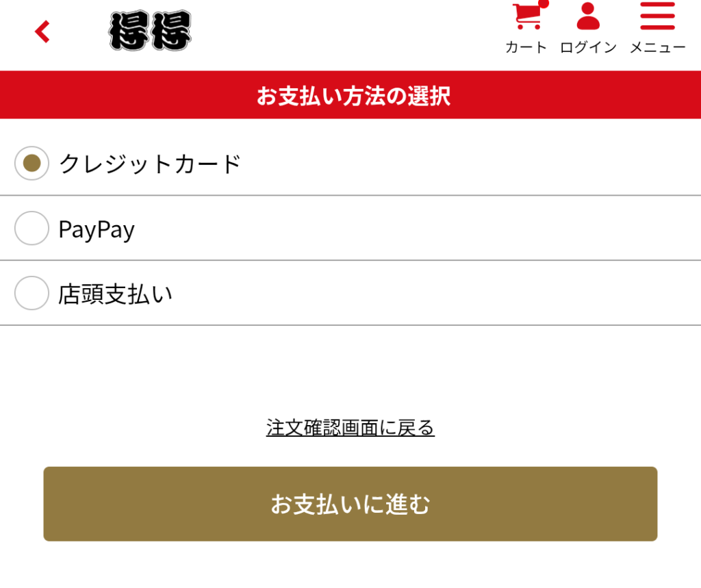 画面上で決済を完了させるもしくは、店舗支払いを選びましょう。